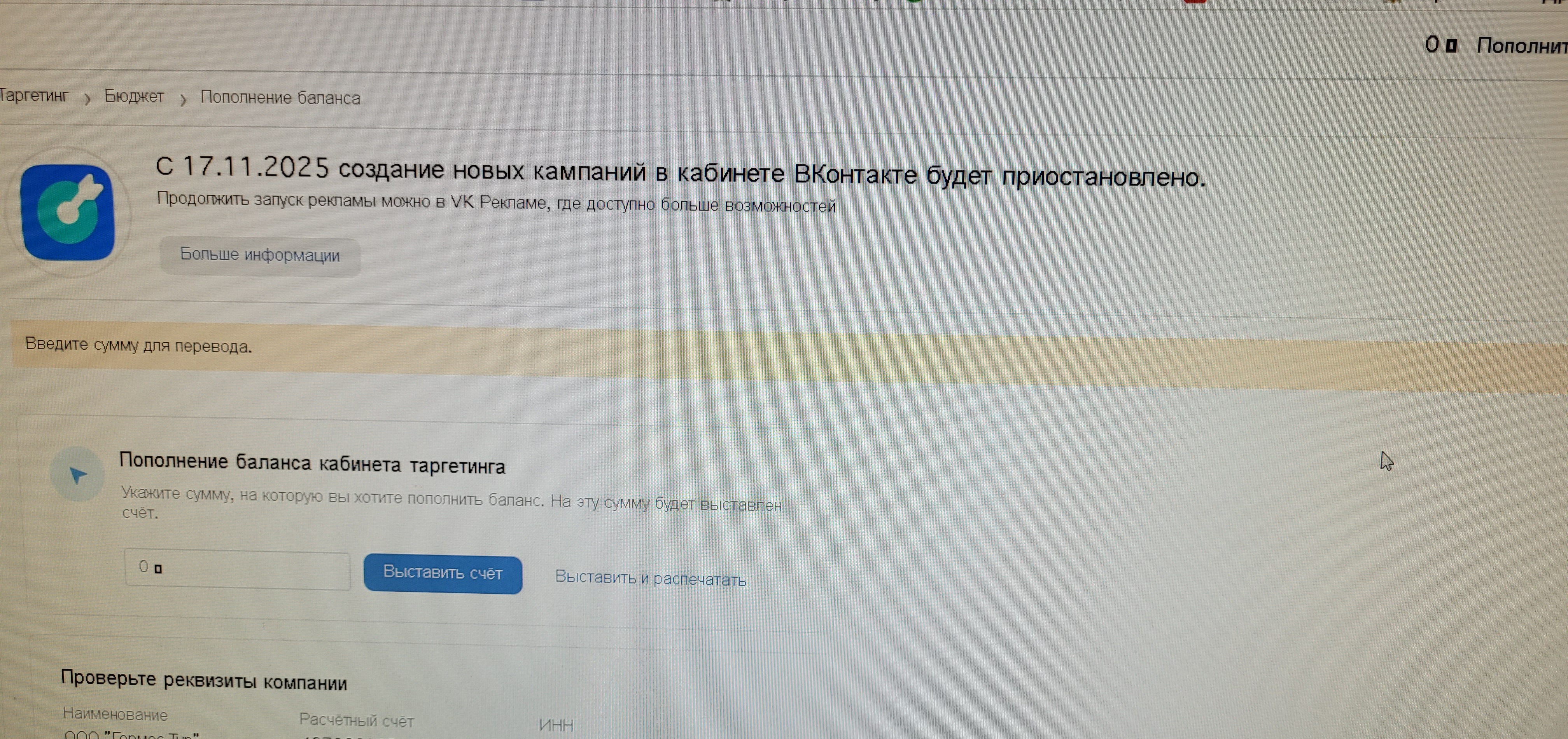 Дело в том, что у меня весь бюджет открутился как раз до 17.11, объявления запущены, но на паузе - ждут денежного пополнения. При этом я всё еще могу выставить счет в старом РК (только что проверила) и оплатить его. Вот и думаю: если пополнить бюджет, не зависнут ли деньги, как у Натальи... Хочется, если есть возможность еще покрутить рекламу в старом РК)
