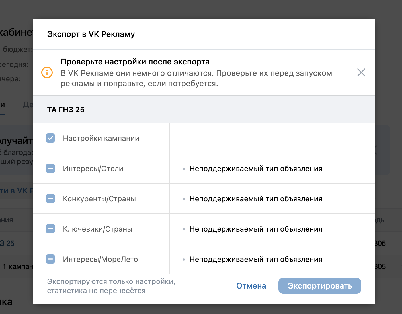 В старом кабинете предлагают экспорт в новый рекламный кабинет, но при этом пишут что невозможно по причине "Неподдерживаемый тип объявления". Кто-нибудь переносил рекламу в новый кабинет?