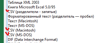 Здравствуйте. При загрузке своих аудиторий возник вопрос. Например, я выгрузила ID Вк из Сенлера, и потом экселевский файл нужно сохранить в формате CSV. У меня при сохранении предлагается три варианта (пометила на скрине), в каком именно?