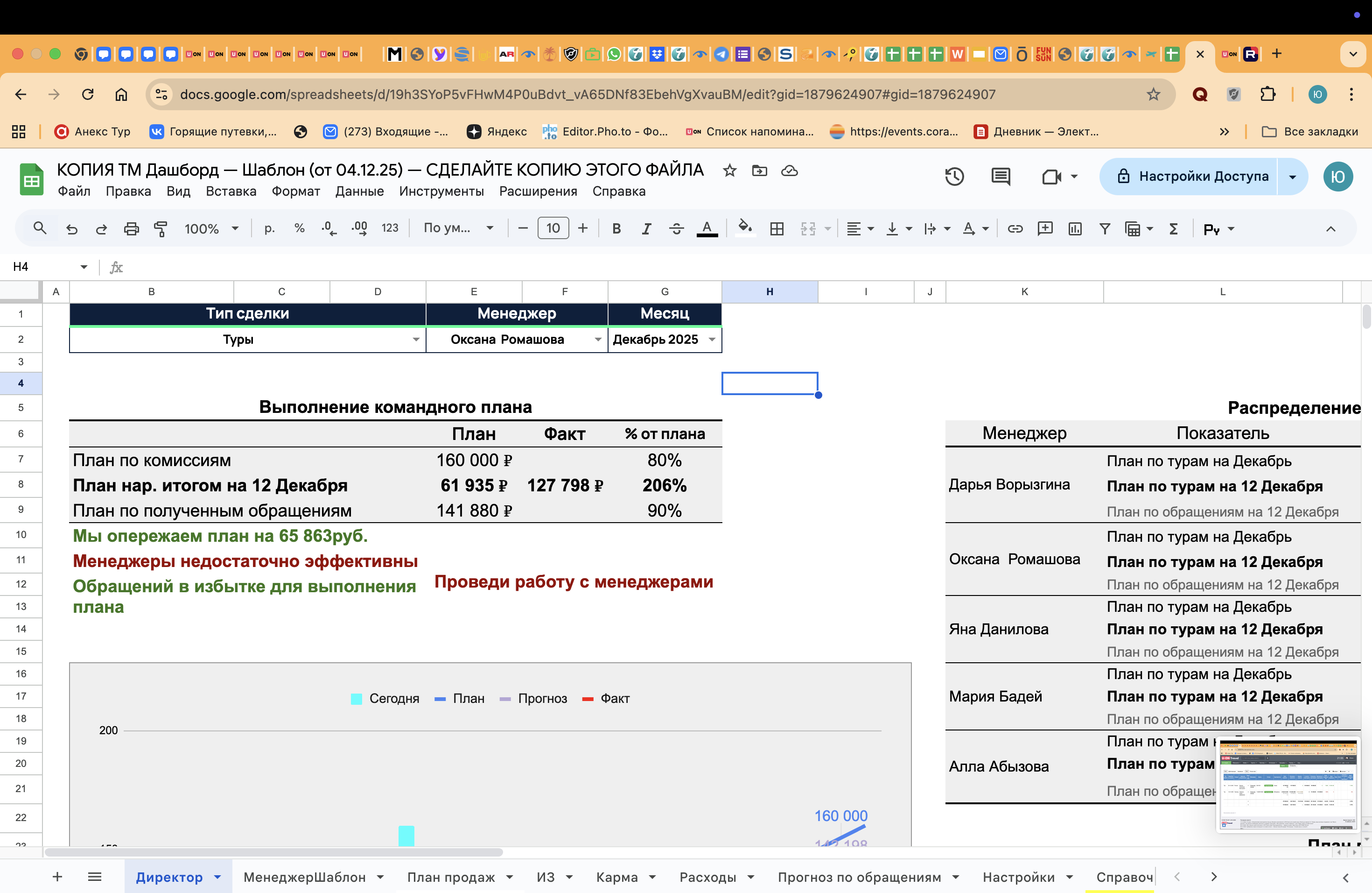 Пошла по второму пути - почистила таблицу(все вкладки), все данный подгрузились заново, НО в Факте выполнения командного плана цифра все равно не совпадает с продажами менеджеров, там считаются все равно все фактические продажи... Ну или я что-то не правильно делаю (ссылки для вас открыты, сможете проверить?)