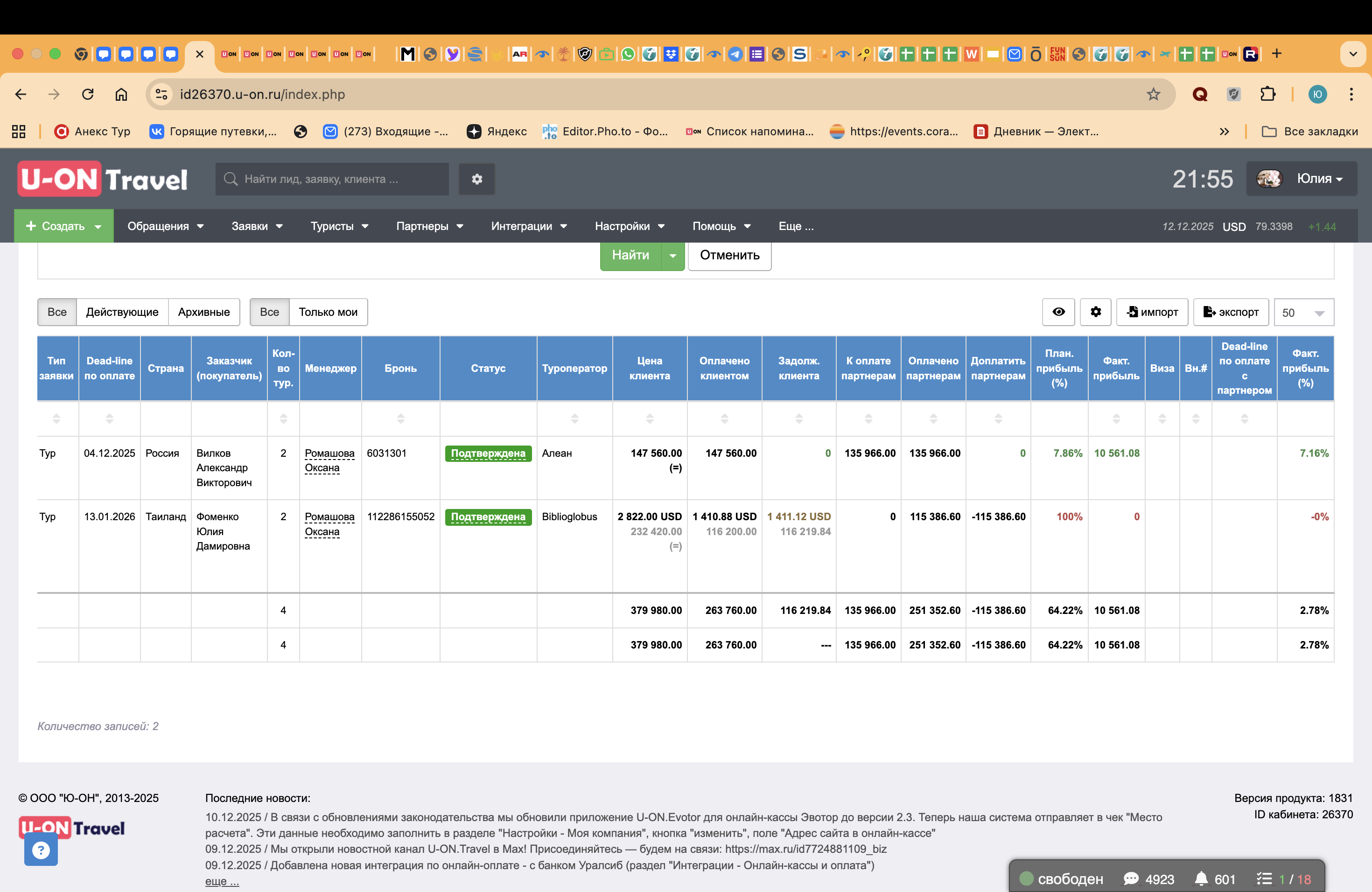 Готово, я думаю может быть криво встают заявки, которые были забронированы ранее, а доплатили в декабре