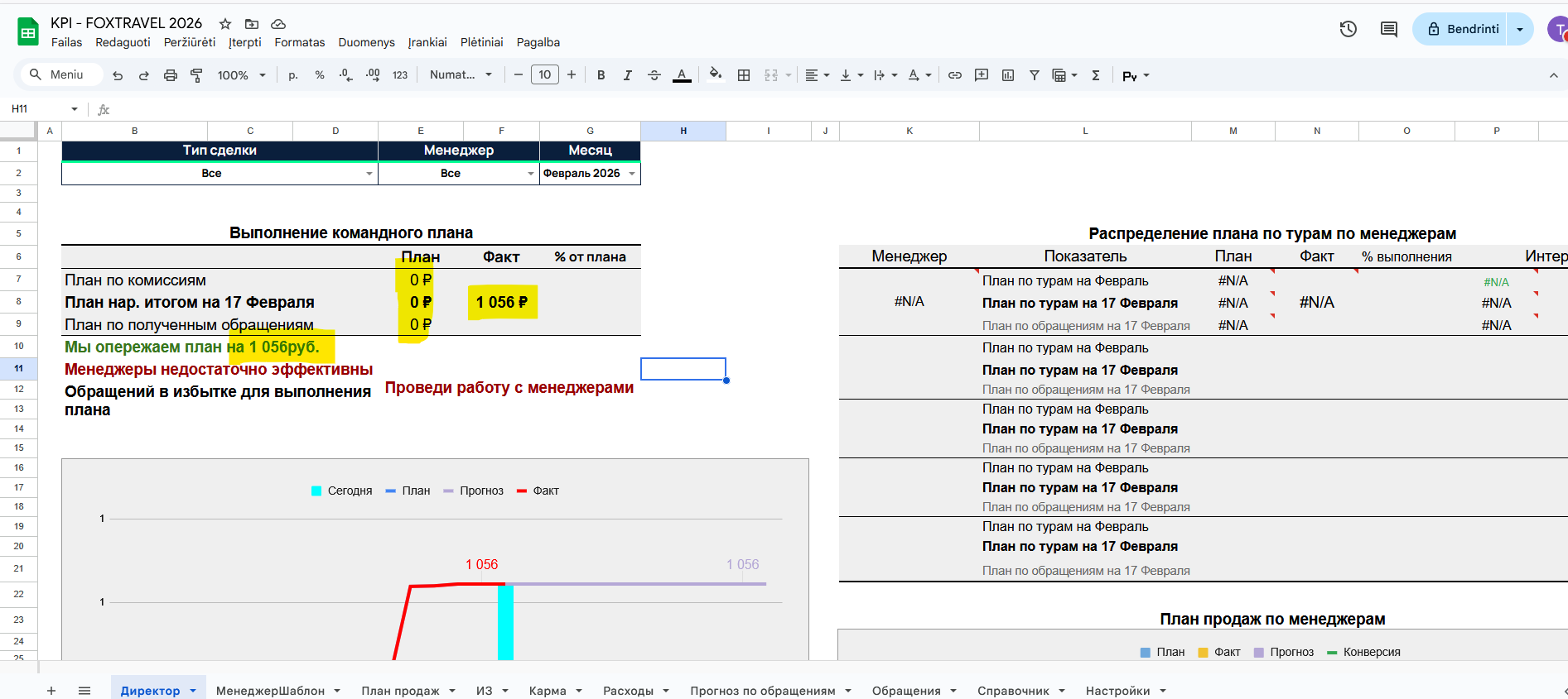 Помимо этого. некорректно отображаются графики (с чем это связано - не знаю). На листе директора факт и прогноз слились воедино. На листах менеджеров факт рисуется фиолетовым (как прогноз), прогноз отсутствует в принципе.