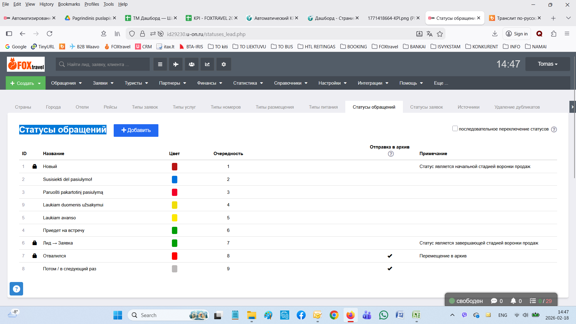 У меня почемуто Статусы подгрузились из ЦРМ из Статусы заявок