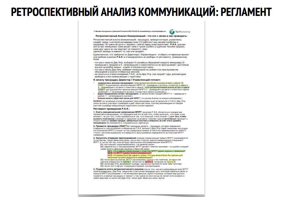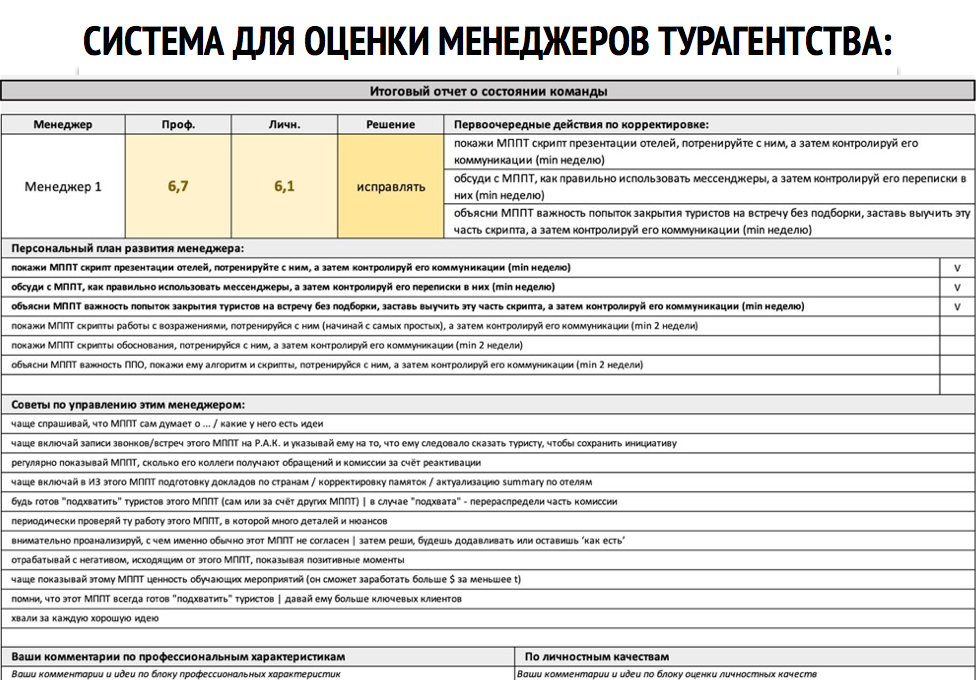 Понимая, что эти изменения могут привести к частичной замене людей в вашем коллективе, мы добавили к этому этапу 5 бонусов: алгоритм оценки менеджеров (поможет принять по каждому итоговое решение), технологии найма качественных подчинённых (чтобы быстро найти замену), гайды по турпродуктам и перечень проверенных отелей (чтобы вам не нужно было тратить время на создание внутреннего курса по страноведению для вашей команды), алгоритм стажировки (из новичика в продающего менеджера за 3 недели) и книгу менеджера (в неё собраны все правила/стандарты, бизнес-процессы и скрипты, которые мы с вами внедрим на этом этапе).