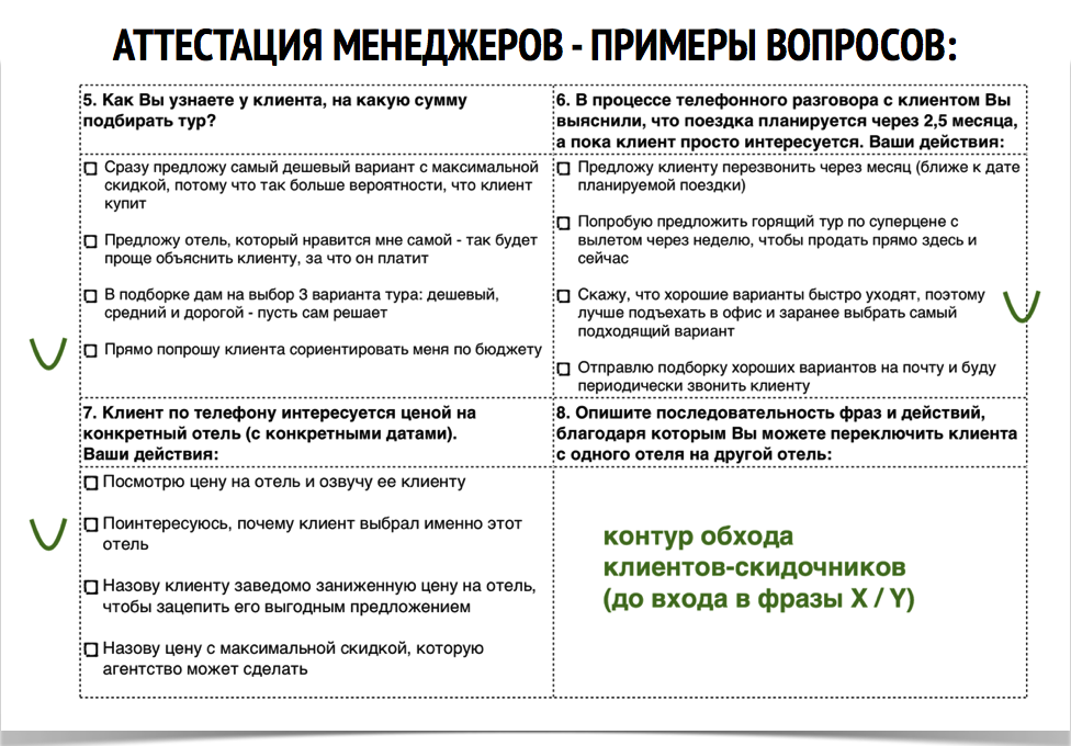 …честно говоря, мы уже устали детально показывать, почему такой подход не работает. :) Устали настолько, что семь лет назад даже провели специальный эфир, на котором подробно показали, как скрипты внедряются в турагентствах, и почему без огромного количества поддерживающих процессов и процедур, они – бесполезны.