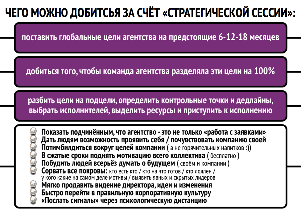 Затем внедрим в работу вашего агентства стек технологий, который будет поддерживать команду продаж в ресурсном состоянии: схемы финансового стимулирования, нефинансовая мотивация, планёрки и постоянное обучение – всё это сформирует в вашем коллективе конструктивный микроклимат, в котором все работники (вместе) бьются за достижение амбициозных финансовых результатов.